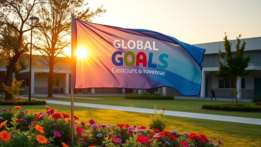 Leerlingen Den Omgang in Schaijk onthullen vlag voor Global Goals